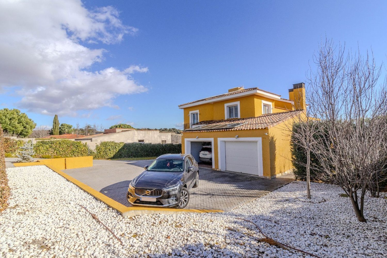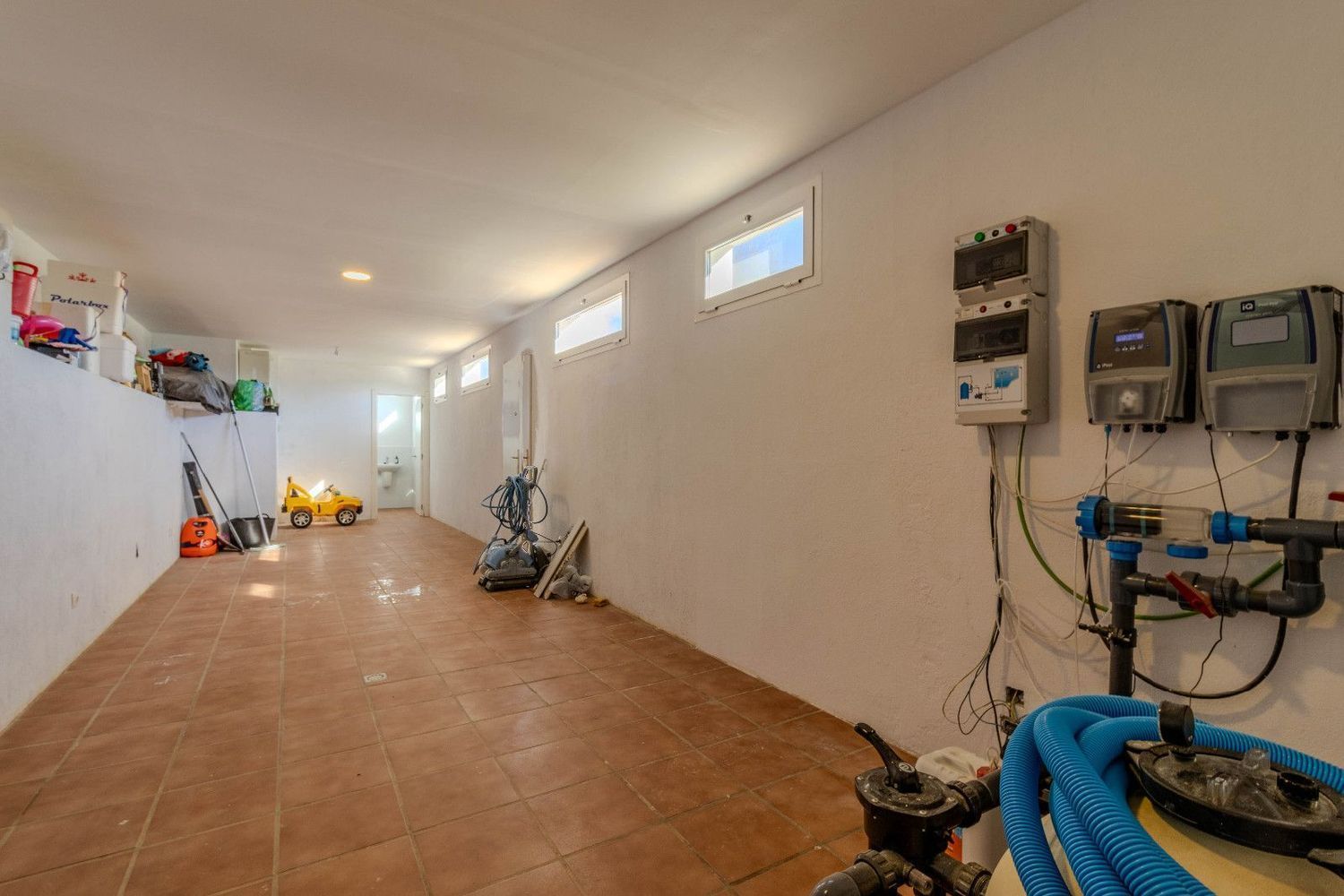 Parcela con acceso en hormigón impreso, piscina con sistema de cloración salina y estancia independiente en semisótano con baños, apta como zona de invitados o espacio polivalente.