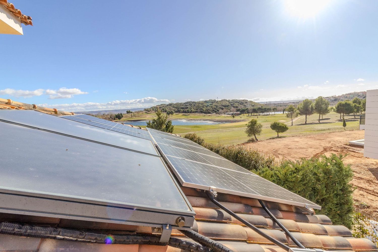 Cuenta con instalación fotovoltaica de 10 kW dividida en dos inversores independientes, además de sistema solar de apoyo para agua caliente sanitaria. Dispone de calefacción por suelo radiante mediante gas natural, con pavimento técnico adaptado para una correcta transmisión térmica, y aire acondicionado por conductos.