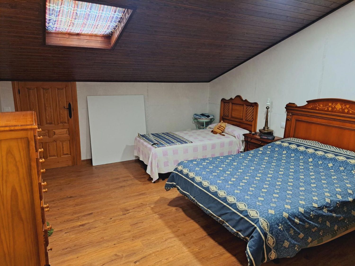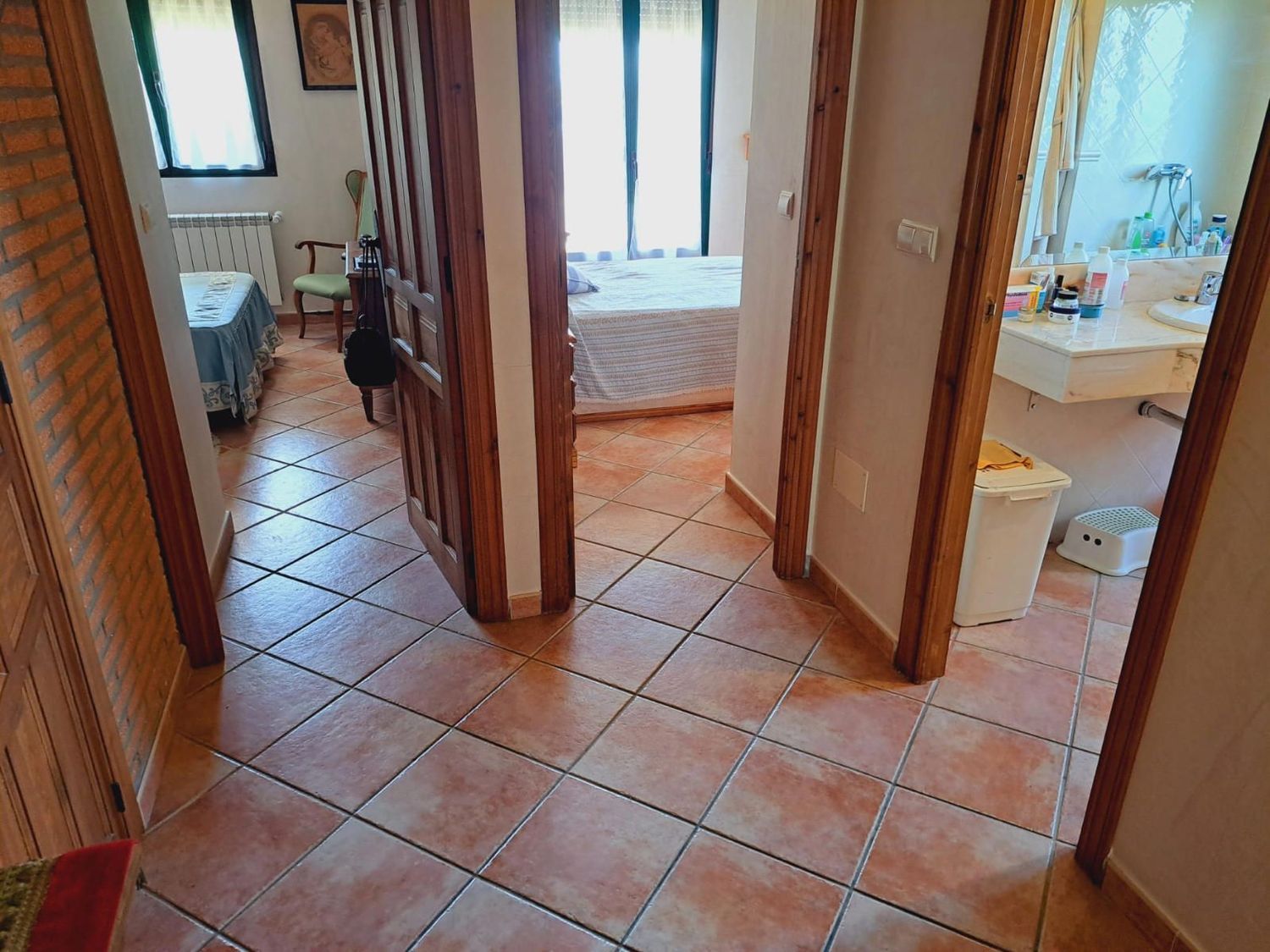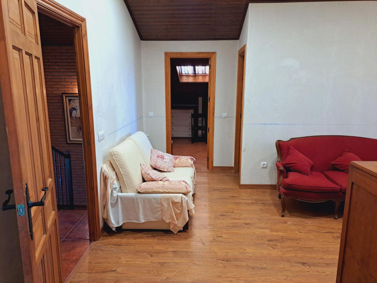 En la planta superior se sitúa un salón común muy versátil, que puede destinarse a zona de estar, despacho o incluso convertirse en un cuarto dormitorio si se necesita más espacio. En esta planta también se encuentran tres amplios dormitorios adicionales y un baño completo, ofreciendo amplitud suficiente para toda la familia.