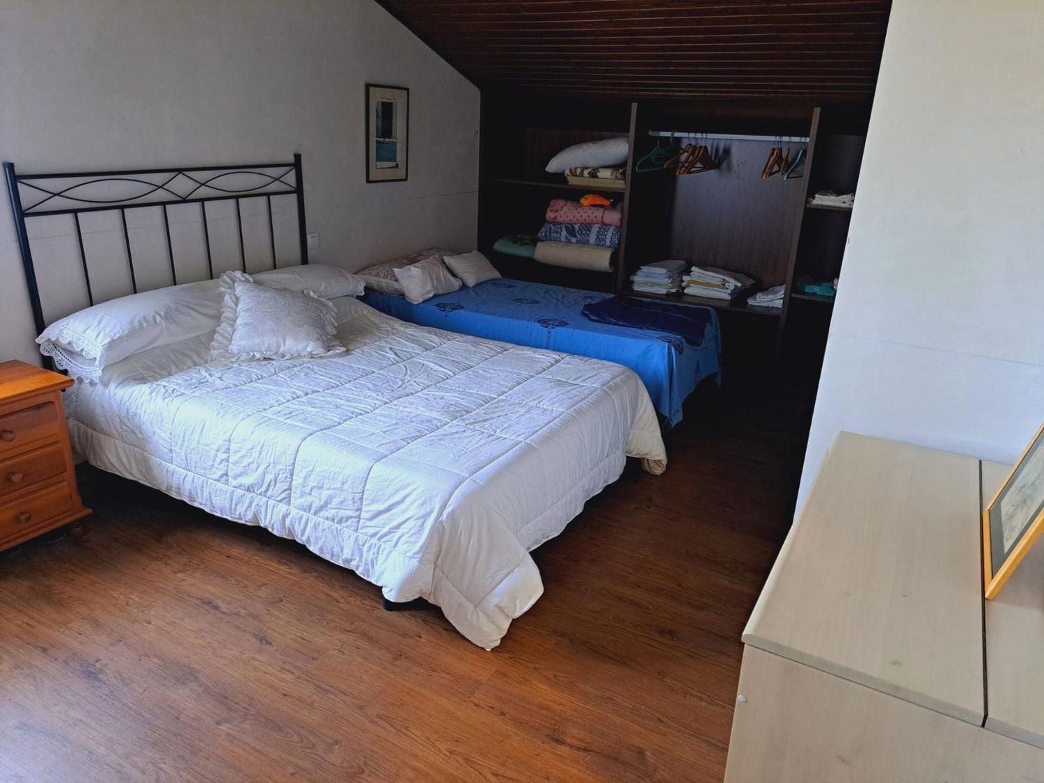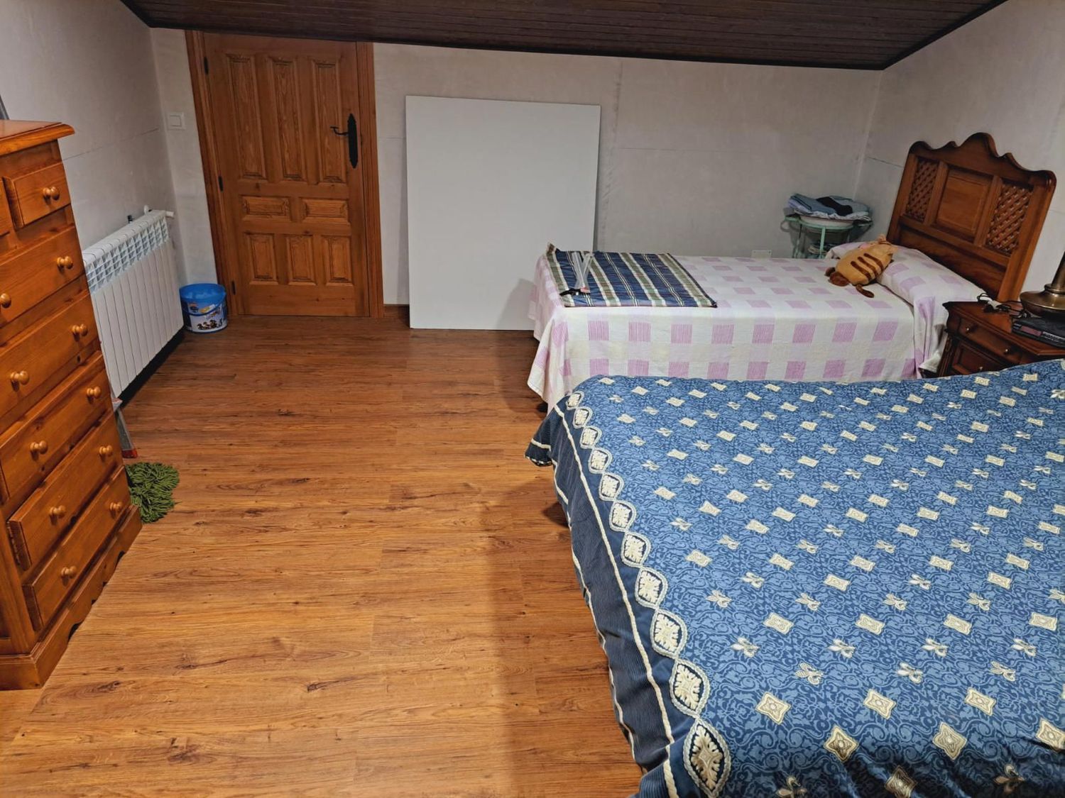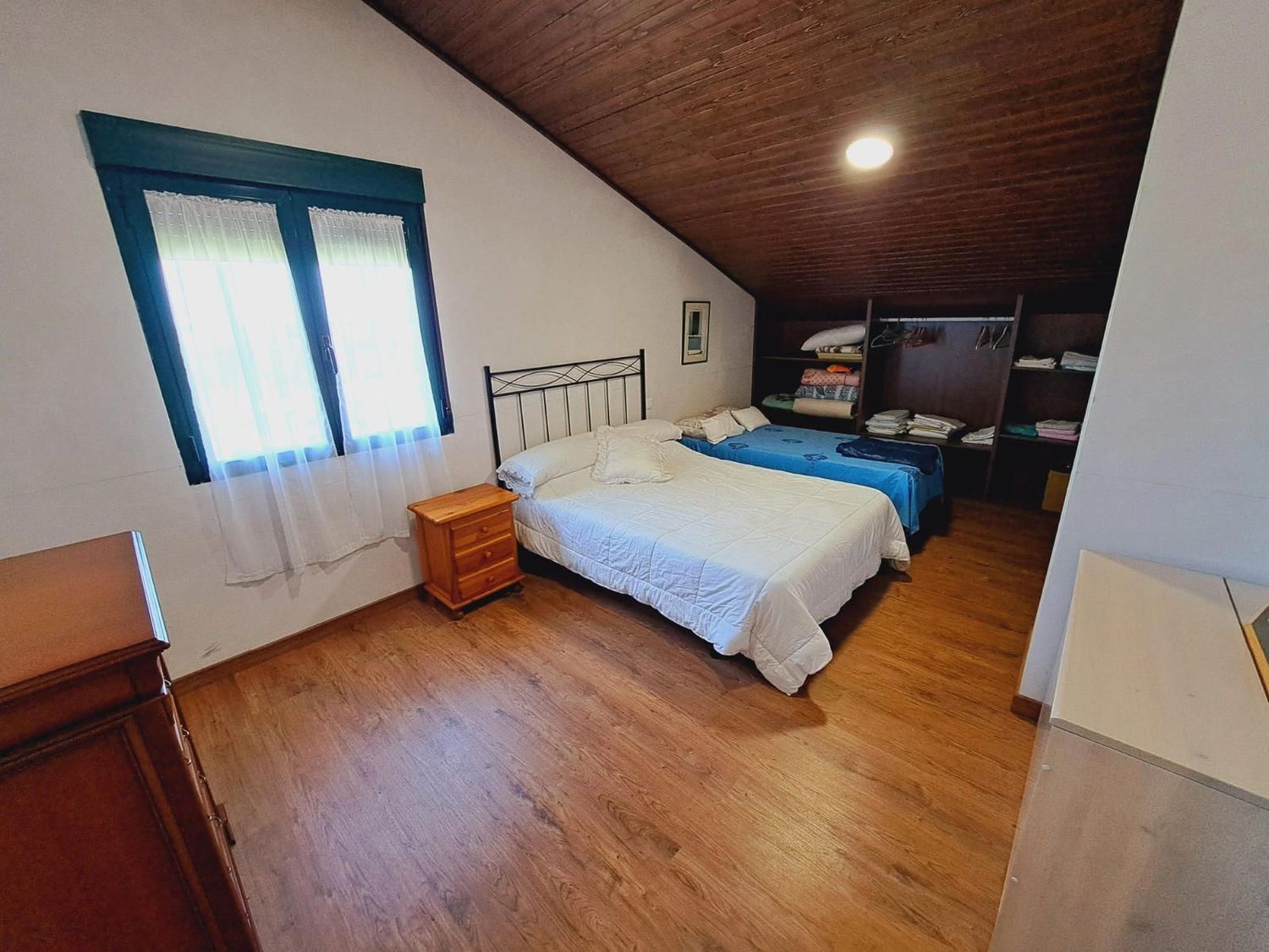 En la planta superior se sitúa un salón común muy versátil, que puede destinarse a zona de estar, despacho o incluso convertirse en un cuarto dormitorio si se necesita más espacio. En esta planta también se encuentran tres amplios dormitorios adicionales y un baño completo, ofreciendo amplitud suficiente para toda la familia.