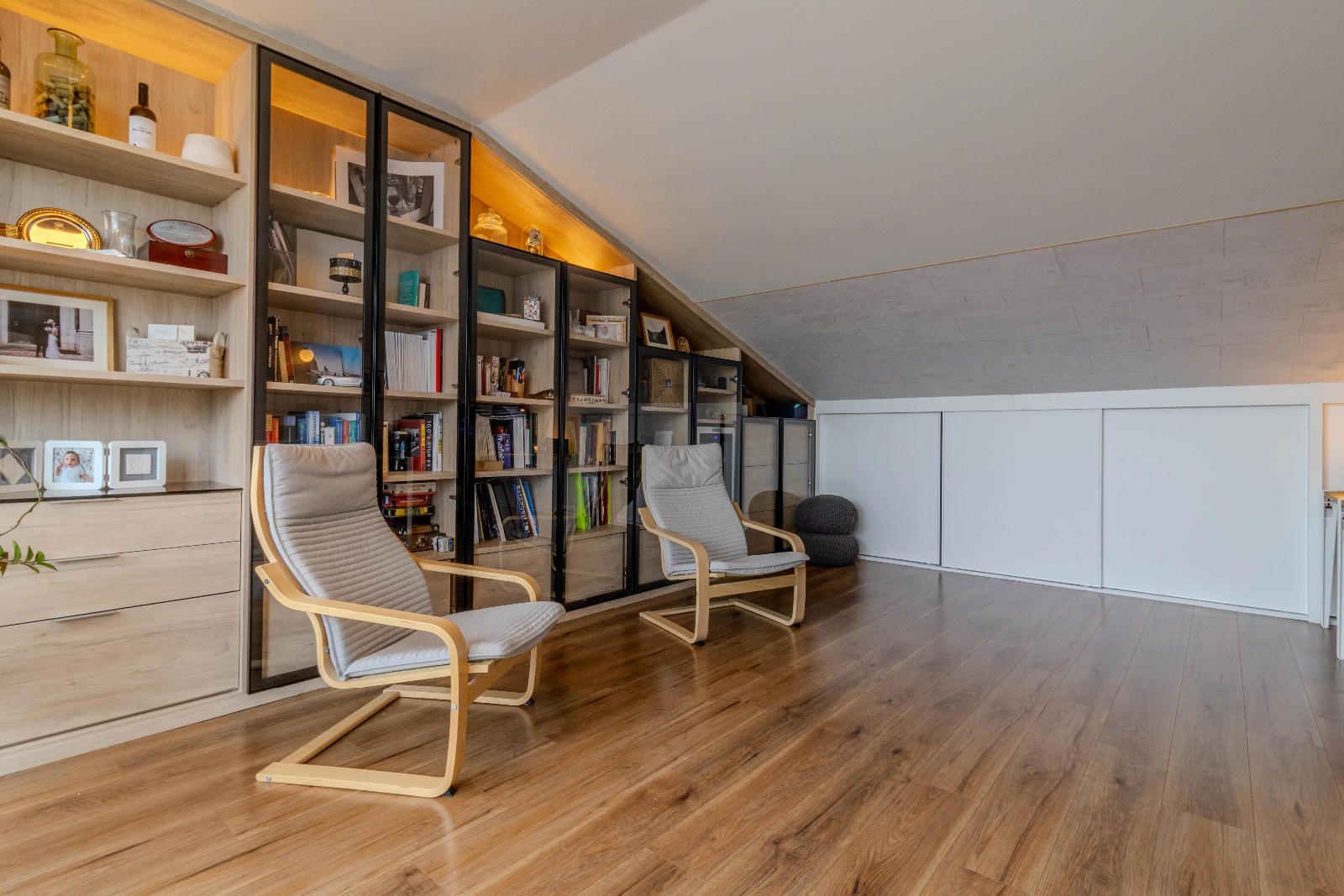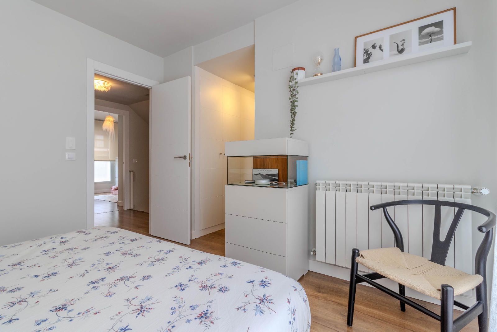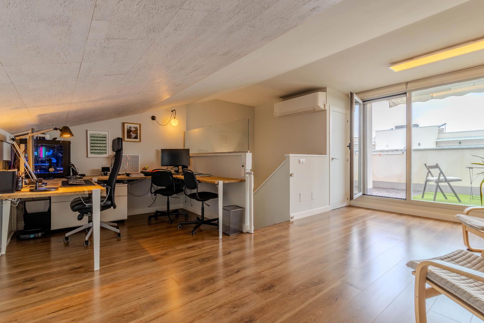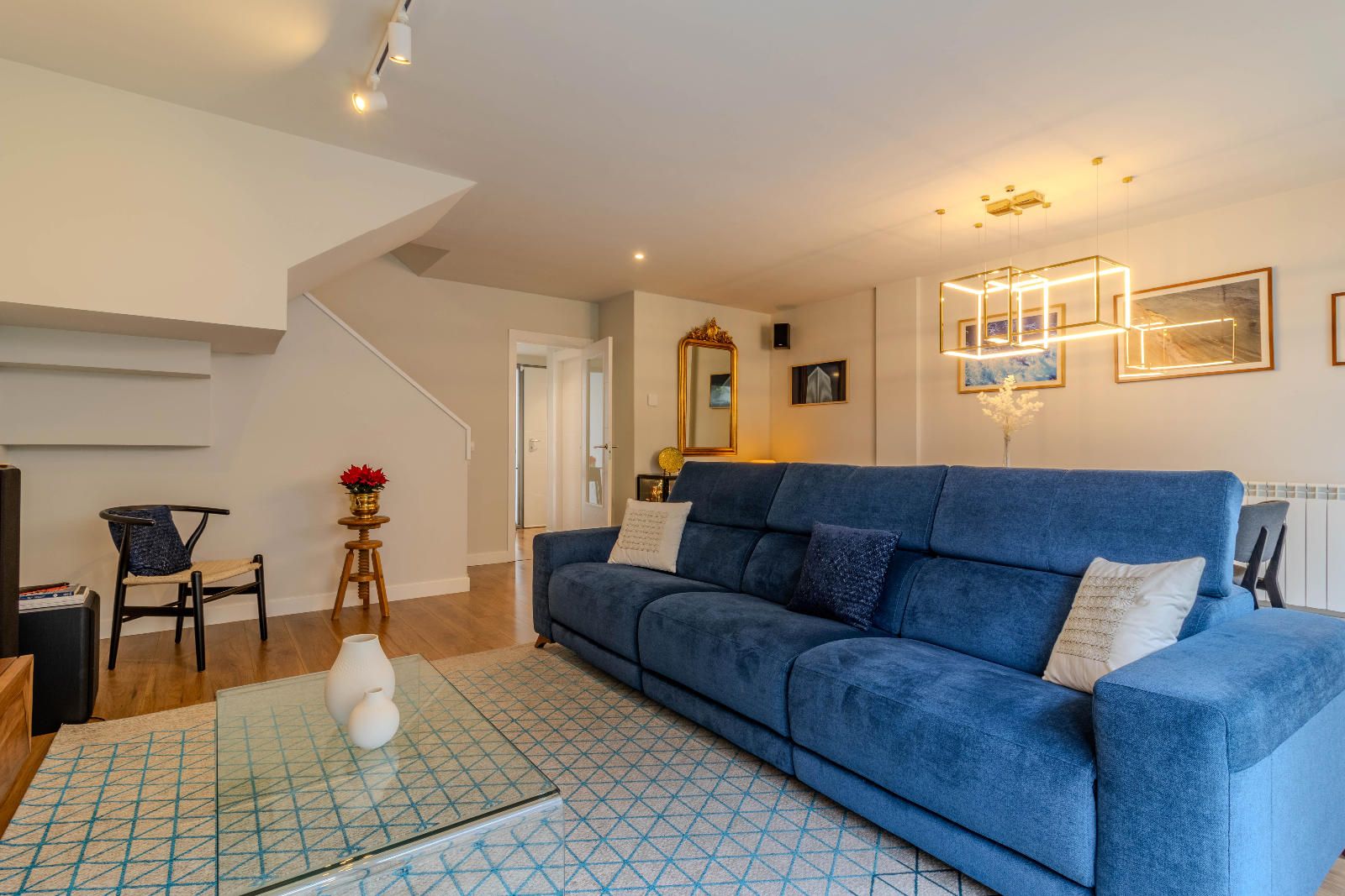 La planta superior se completa con una espaciosa buhardilla amueblada a medida, ideal como despacho, zona de lectura o de ocio, además de una terraza con suelo de madera y césped artificial, perfecta para disfrutar de agradables atardeceres.