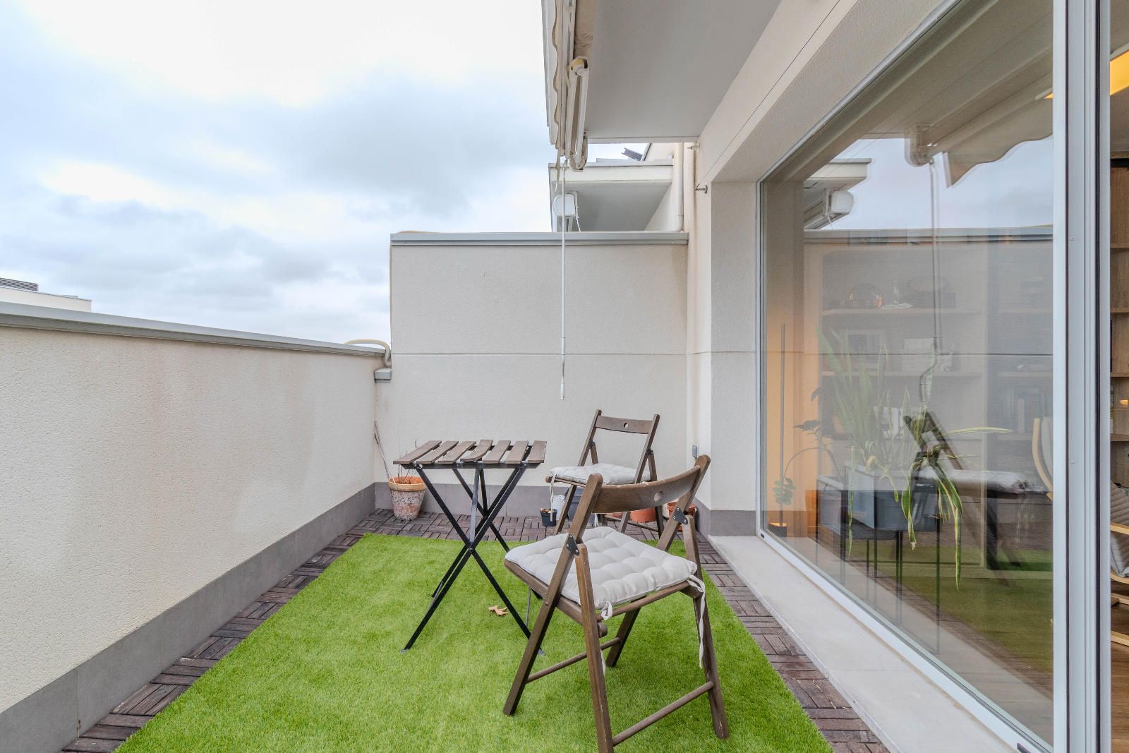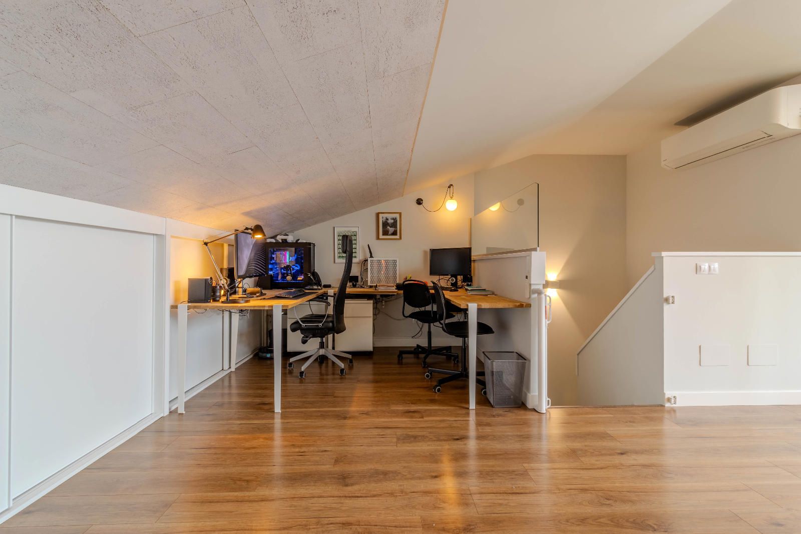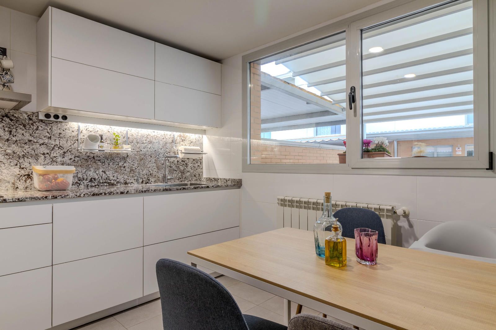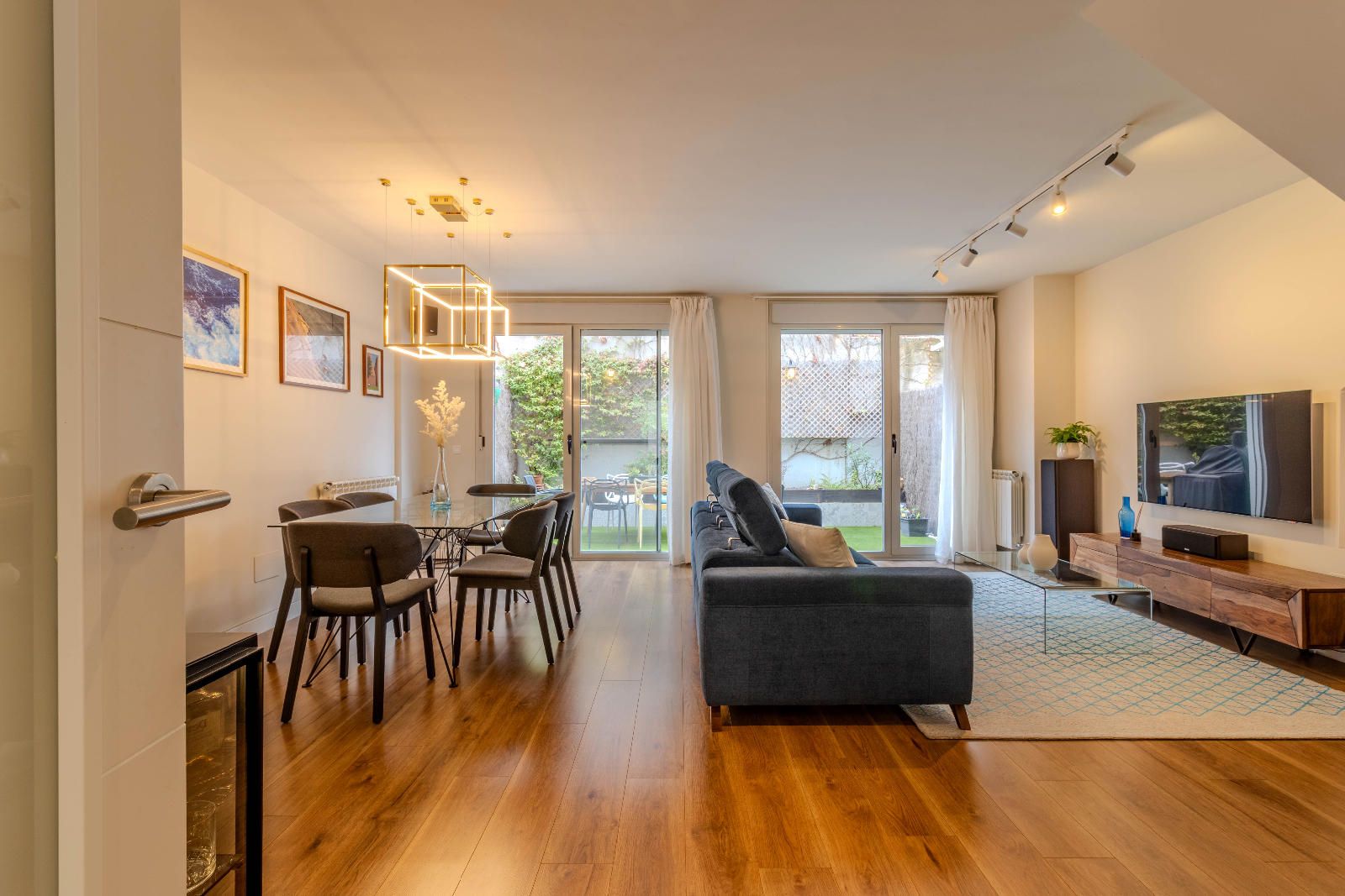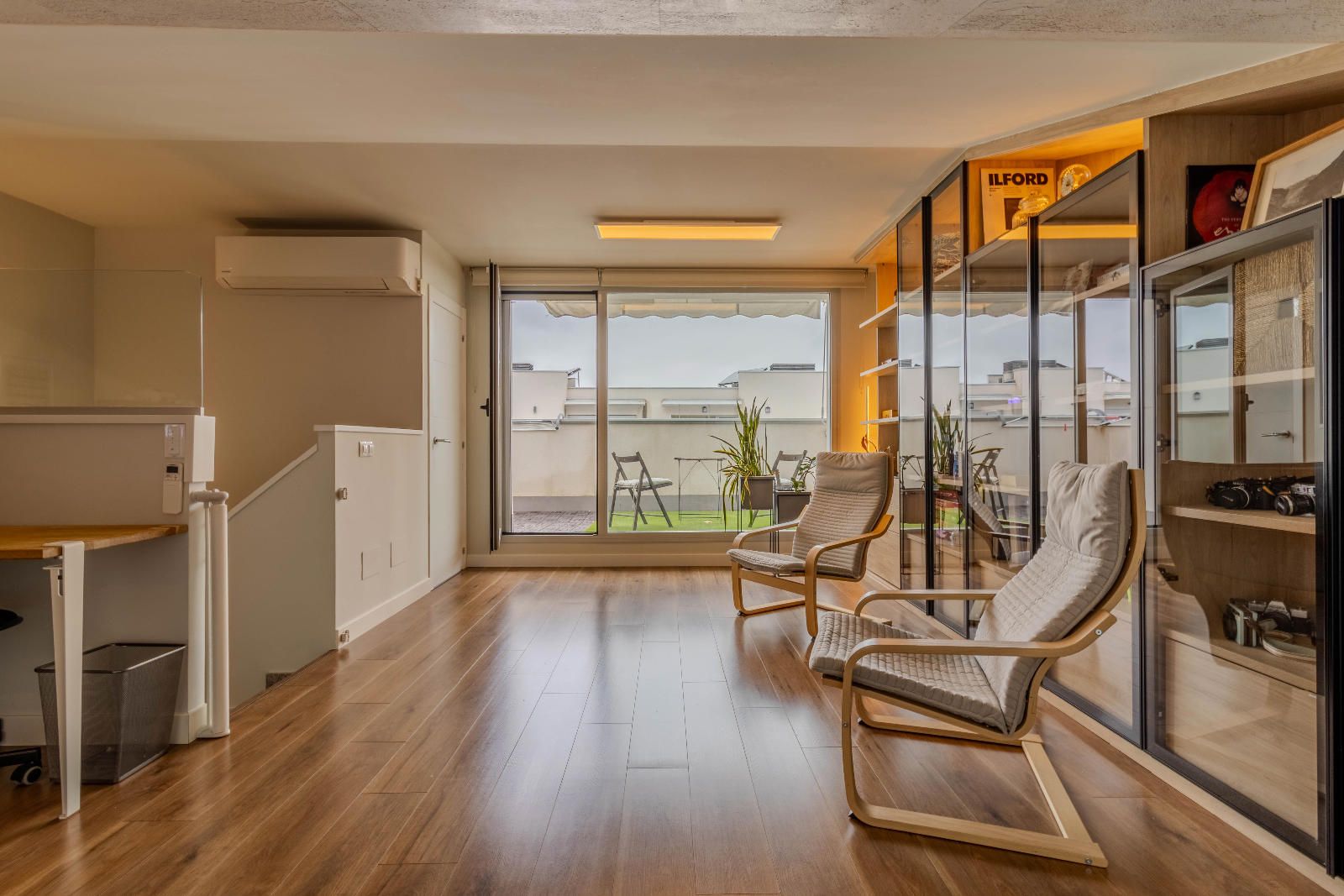 La planta superior se completa con una espaciosa buhardilla amueblada a medida, ideal como despacho, zona de lectura o de ocio, además de una terraza con suelo de madera y césped artificial, perfecta para disfrutar de agradables atardeceres.