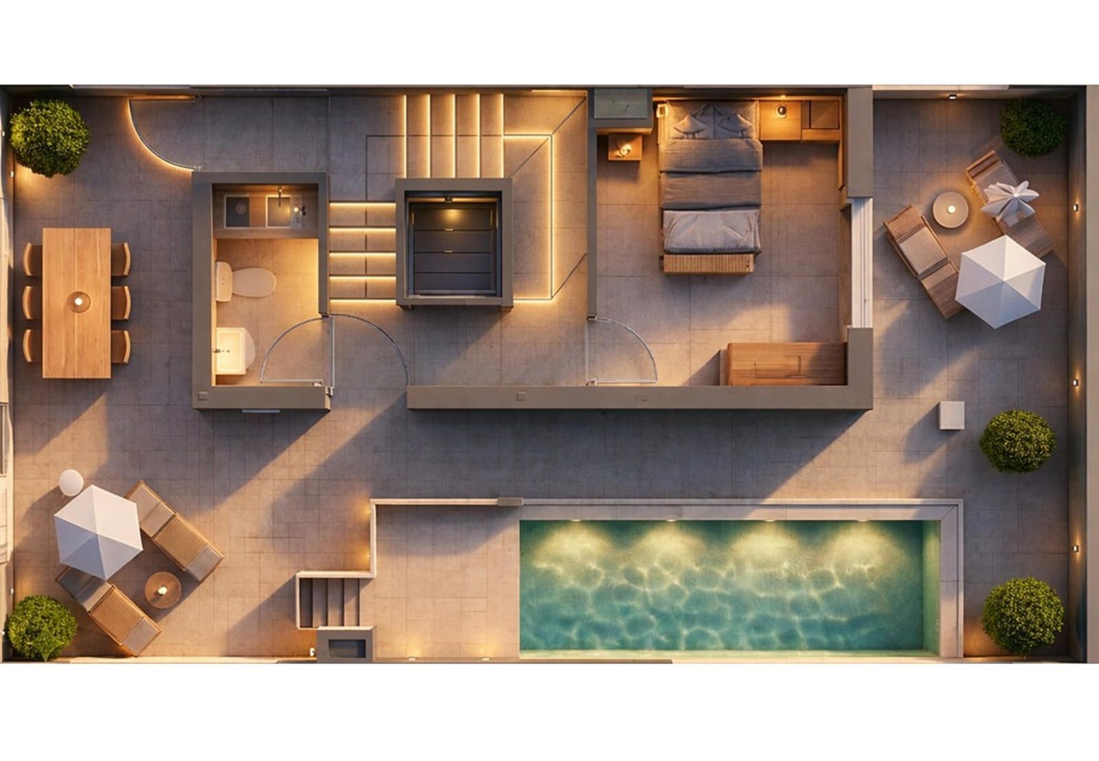 Disfruta de una vivienda única con piscina privada en tu propia azotea, diseñada para ofrecer privacidad absoluta, zona solárium y un espacio exclusivo de relax y ocio.