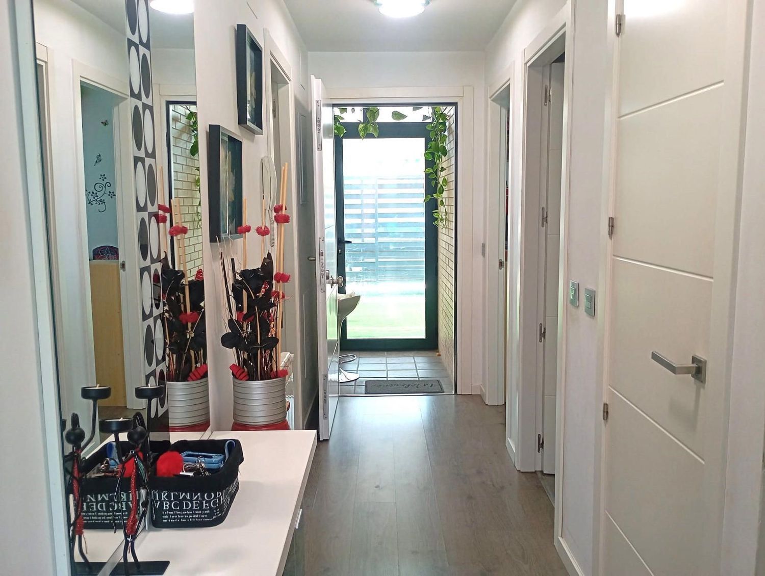 Planta baja: cocina nueva amueblada con lavadero, salón con salida al jardín, dormitorio, baño con ducha, trastero y espacio para segundo vehículo.