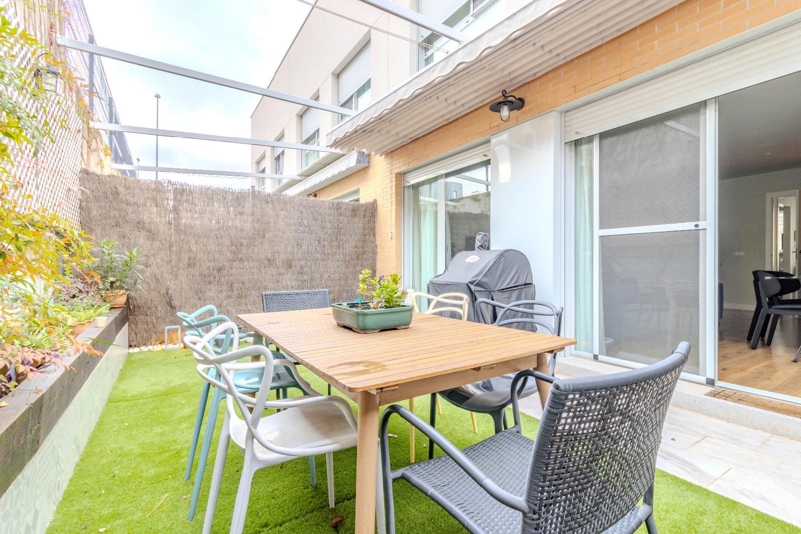 En la planta baja se encuentra un amplio salón con gran luminosidad, una cocina de diseño Santos (modelo Brezo) totalmente equipada, un baño completo, y un acogedor patio con césped artificial instalado en 2024, arriate con riego automático y toldo. La zona de aparcamiento está techada mediante un toldo motorizado que ofrece comodidad y protección durante todo el año.