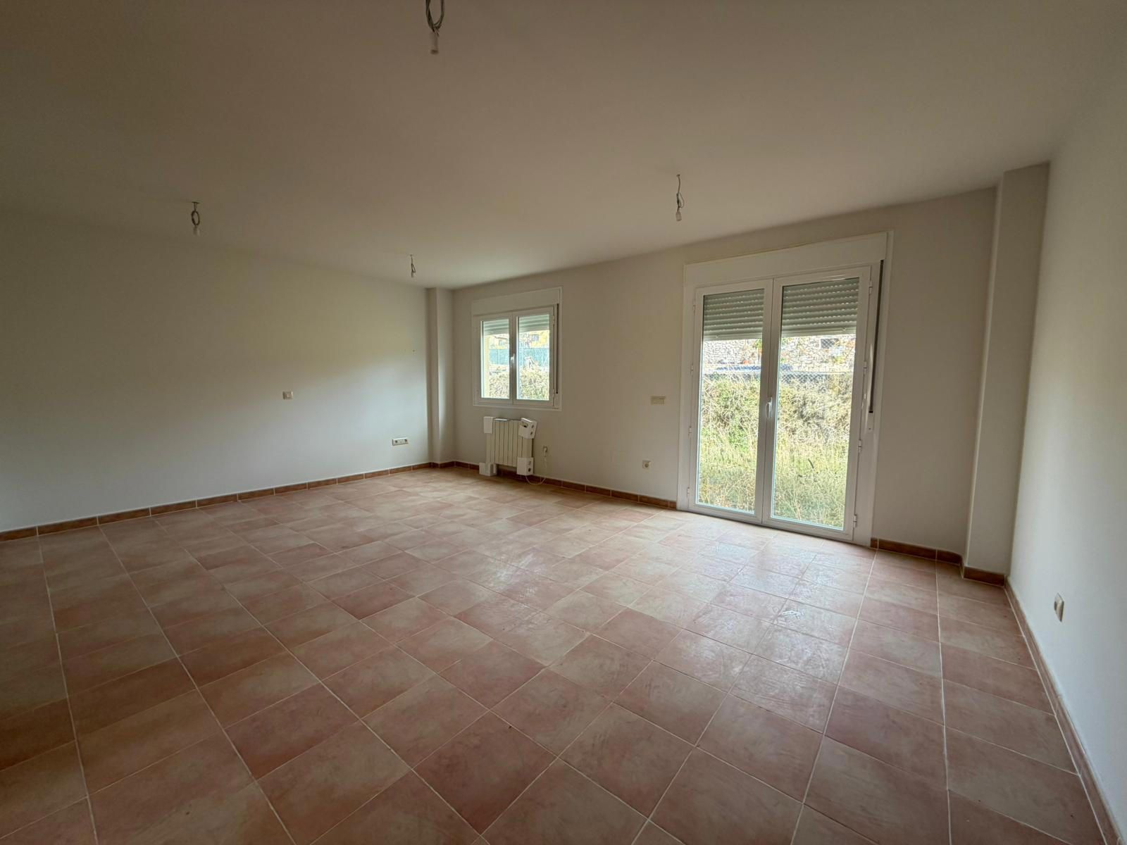 Cocina sin amueblar, baño completo y salón con salida al jardín trasero en planta baja.
