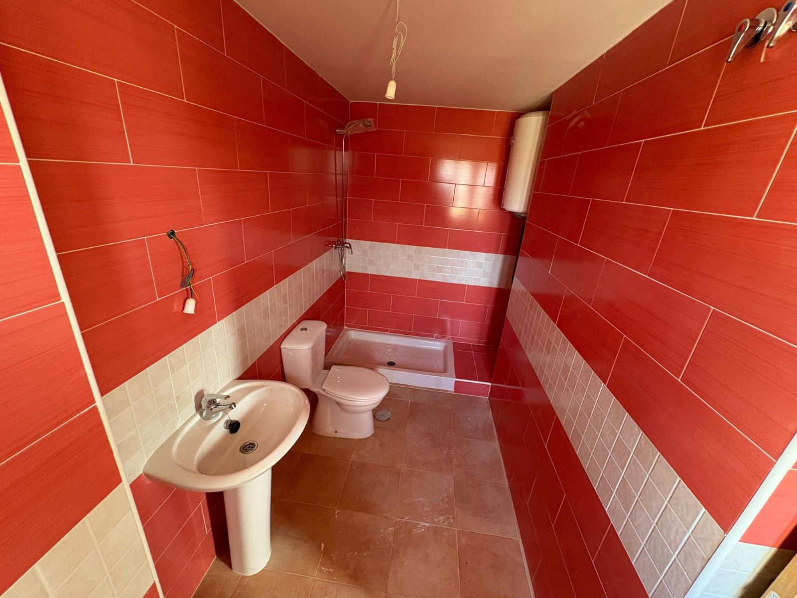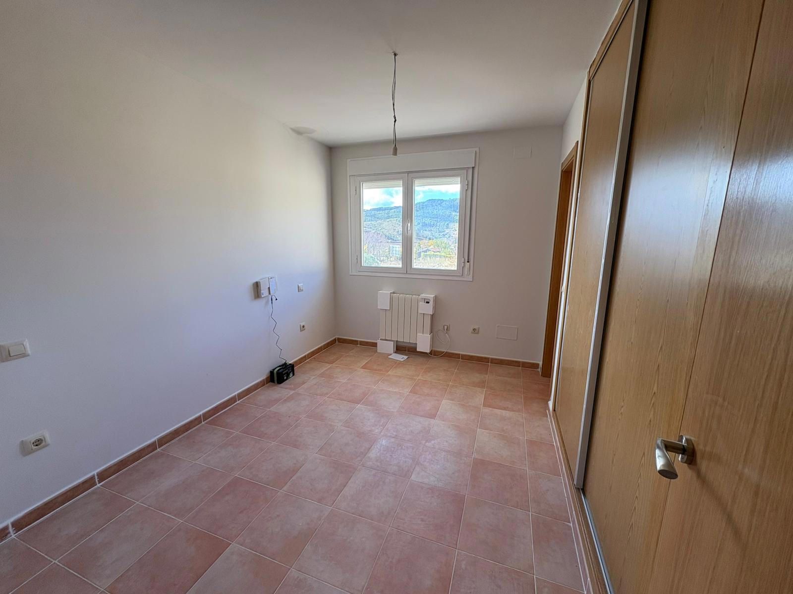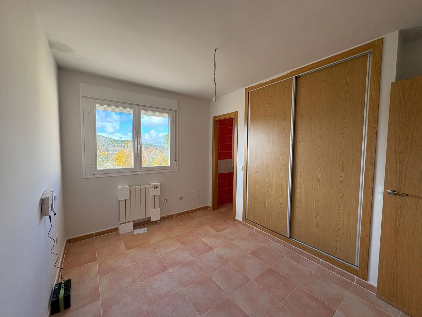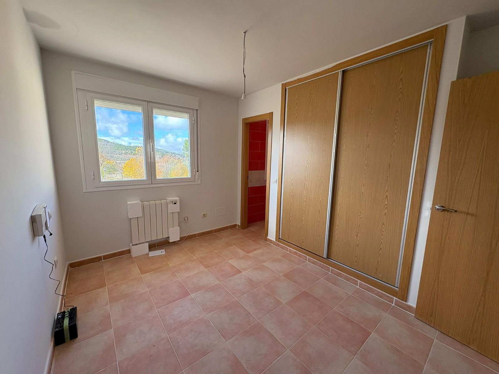 Dispone de calefacción eléctrica, termo de agua caliente, suelos de gres, carpintería exterior de aluminio con climalit, interior de roble y armarios empotrados.