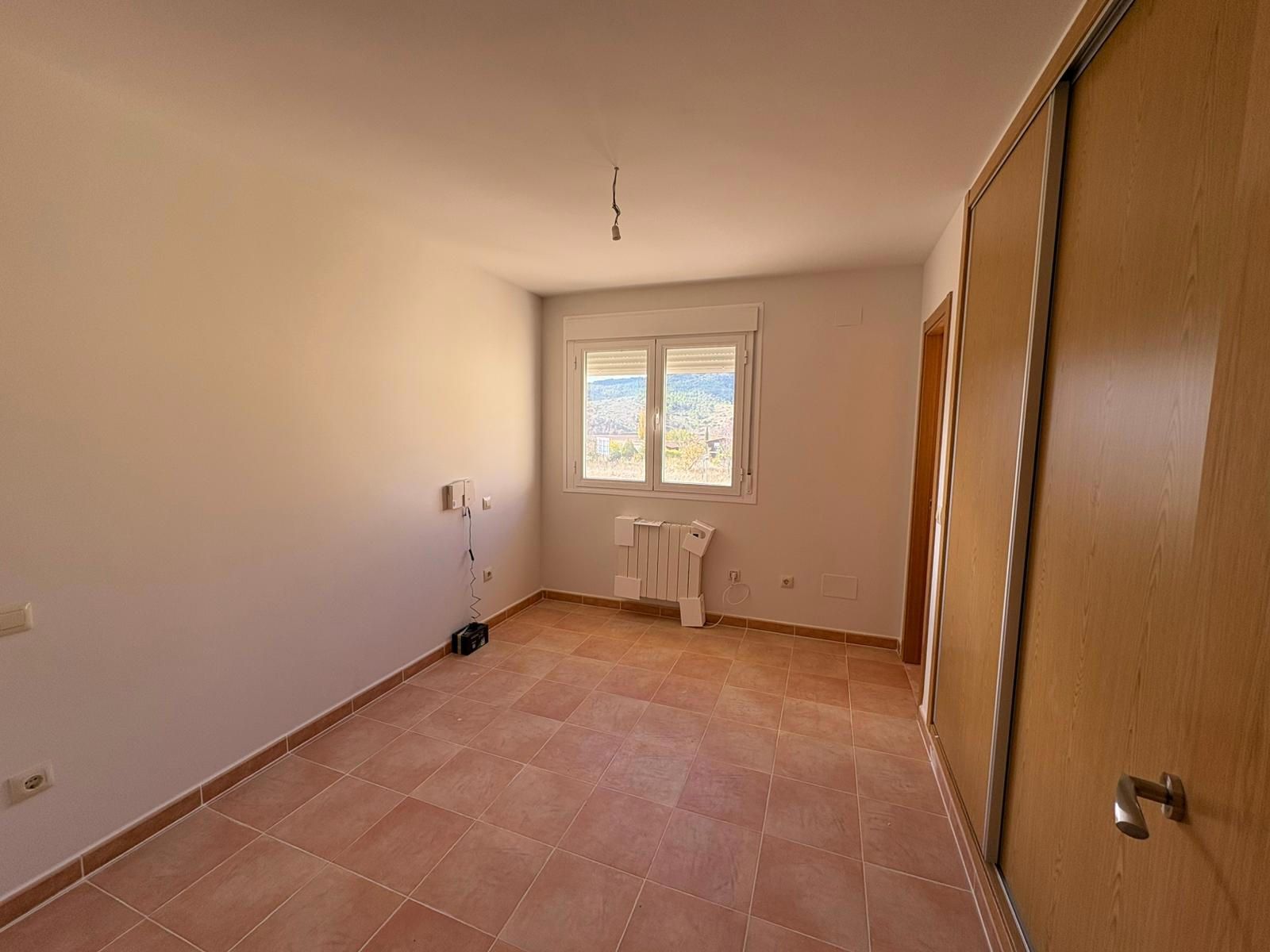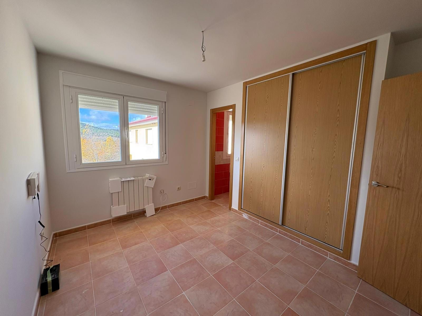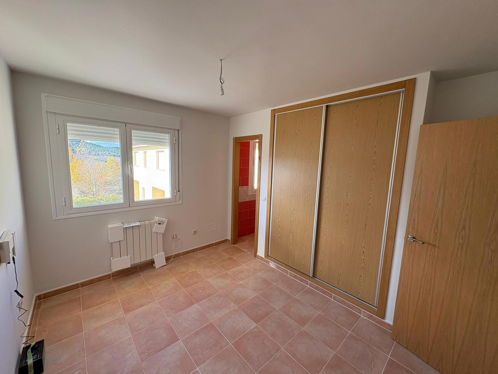 Dispone de calefacción eléctrica, termo de agua caliente, suelos de gres, carpintería exterior de aluminio con climalit, interior de roble y armarios empotrados.