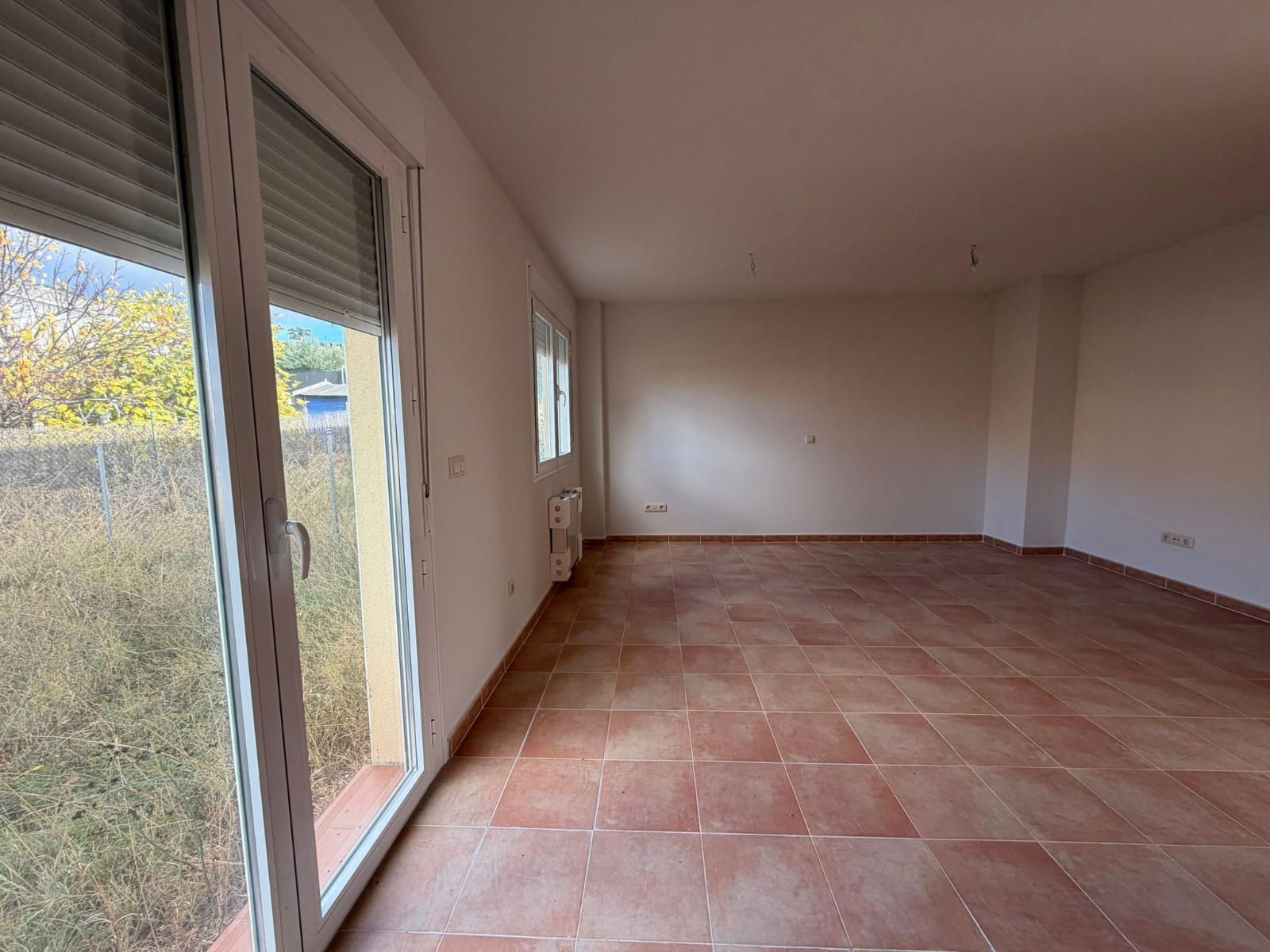 Cocina sin amueblar, baño completo y salón con salida al jardín trasero en planta baja.