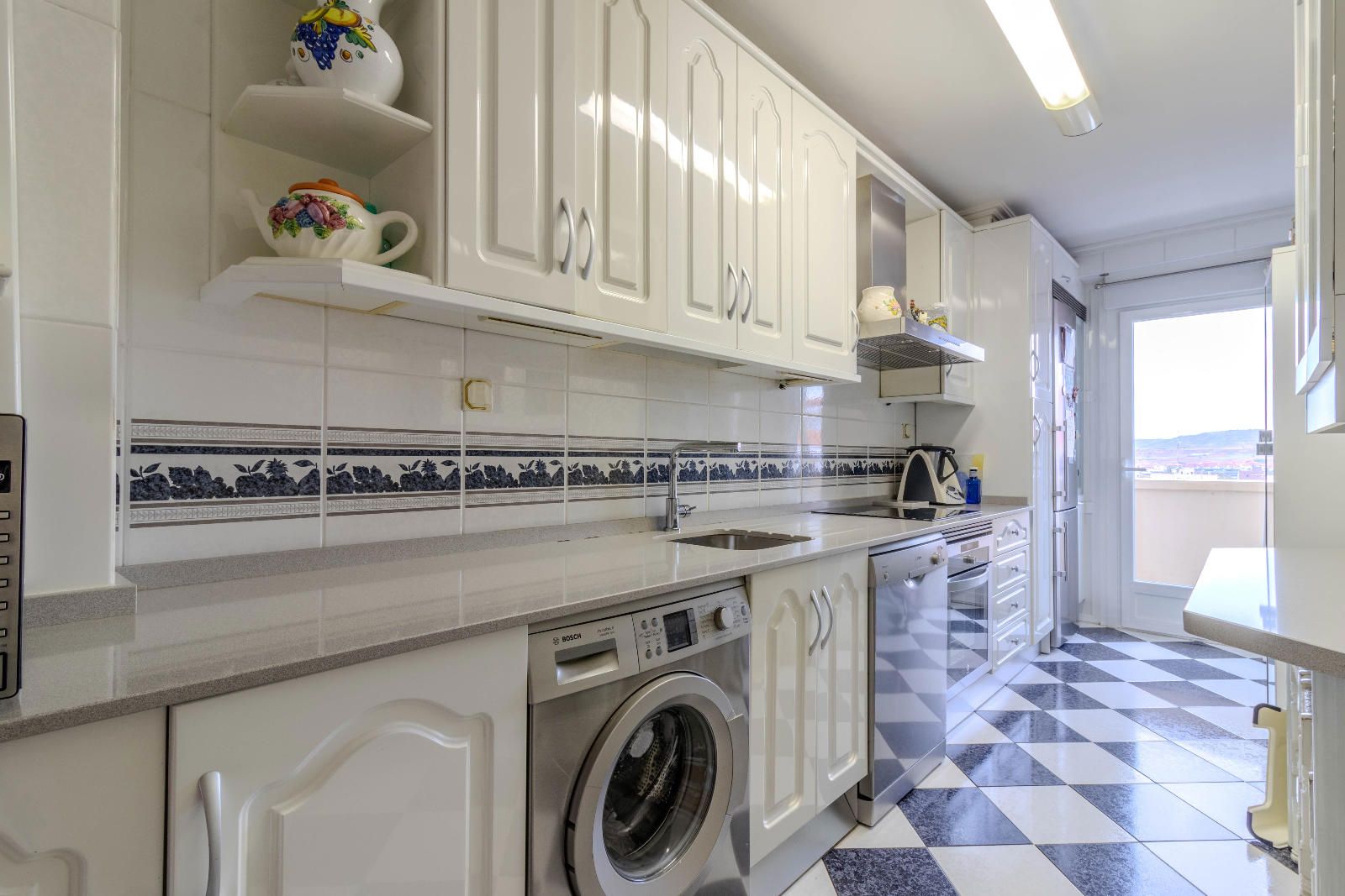 La zona de uso diario se completa con una cocina equipada de diseño práctico, con mobiliario y electrodomésticos de alto rendimiento. La distribución prioriza la comodidad facilitando la circulación entre las zonas de día y las de descanso. Cada dormitorio ofrece suficiente silencio y luz natural, ideal para jornadas de trabajo o estudio en casa sin interrupciones. El conjunto respira modernidad y eficiencia, manteniendo líneas sobrias que facilitan una decoración versátil.